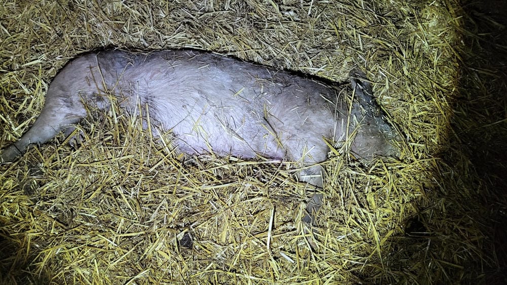 Outdoor free-range sheds where piglets are sent for growing before slaughter, upon further inspection, often have dead piglets inside them.